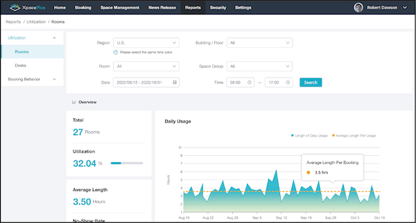 The XpacePlus Platform features a comprehensive set of management functions such as booking, user, space, and device management. Detailed records and reports can help facility managers make better space decisions and management of associated costs.